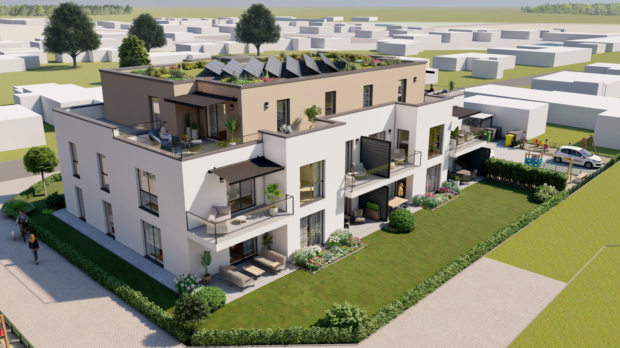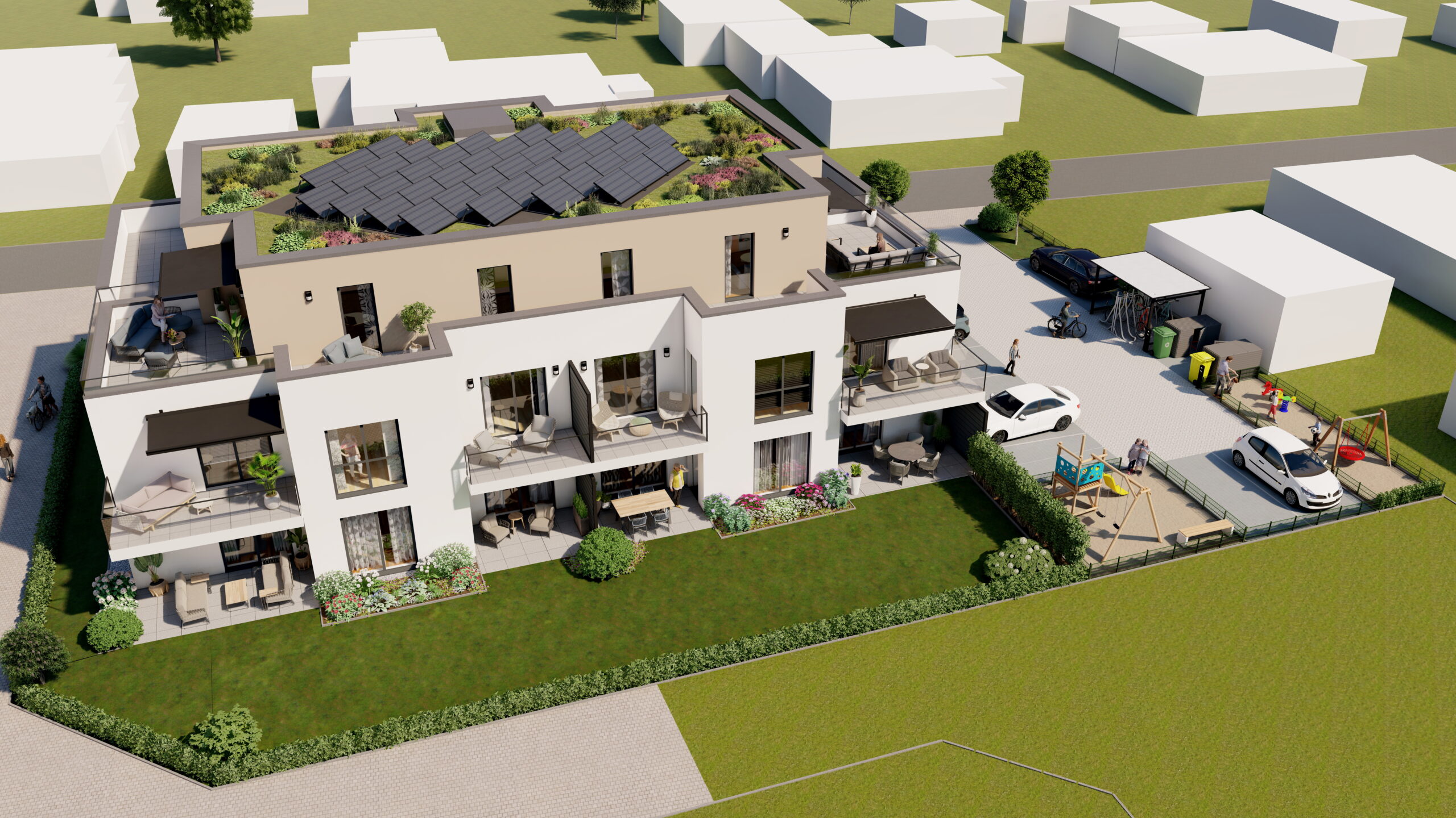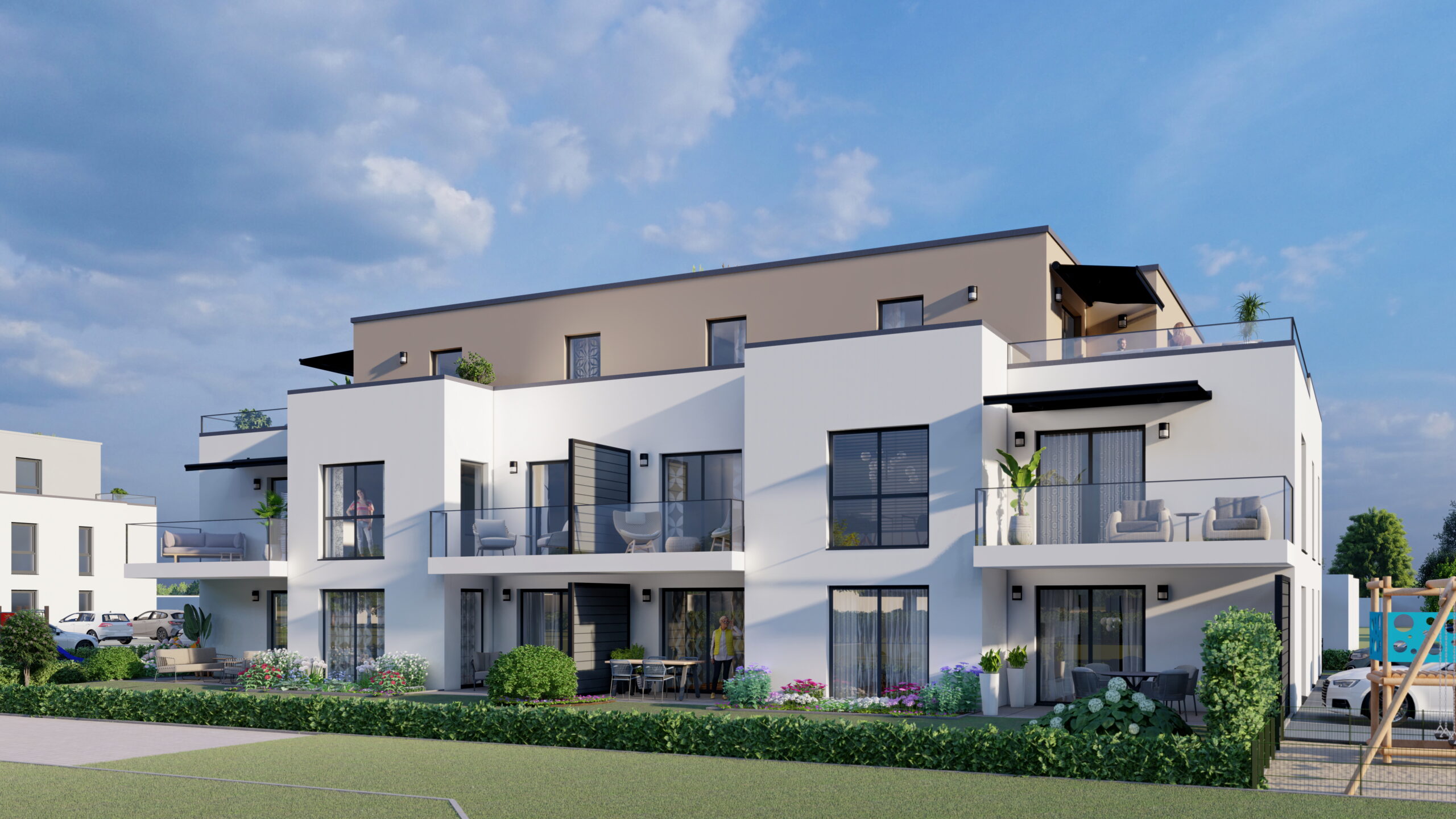 In Minden entsteht ein stilvolles Zehnfamilienhaus, das modernen Wohnkomfort mit durchdachter Architektur verbindet. Die Wohnungen überzeugen durch offene, helle Räume, großzügige Grundrisse und Terrassen, die den Wohnraum sinnvoll erweitern und ein angenehmes Wohngefühl schaffen. Das Objekt richtet sich an Familien, Paare und alle, die Wert auf Qualität, Funktionalität und ein langfristig stabiles Wohnumfeld legen.