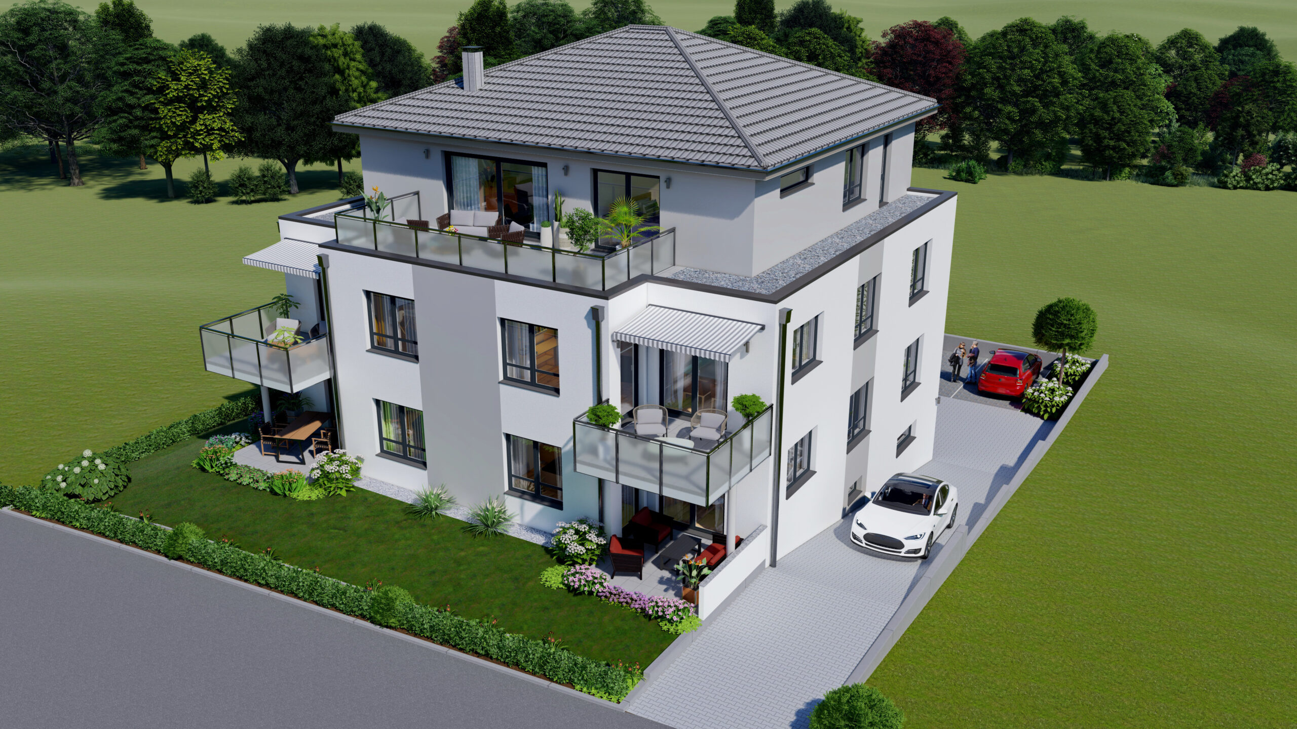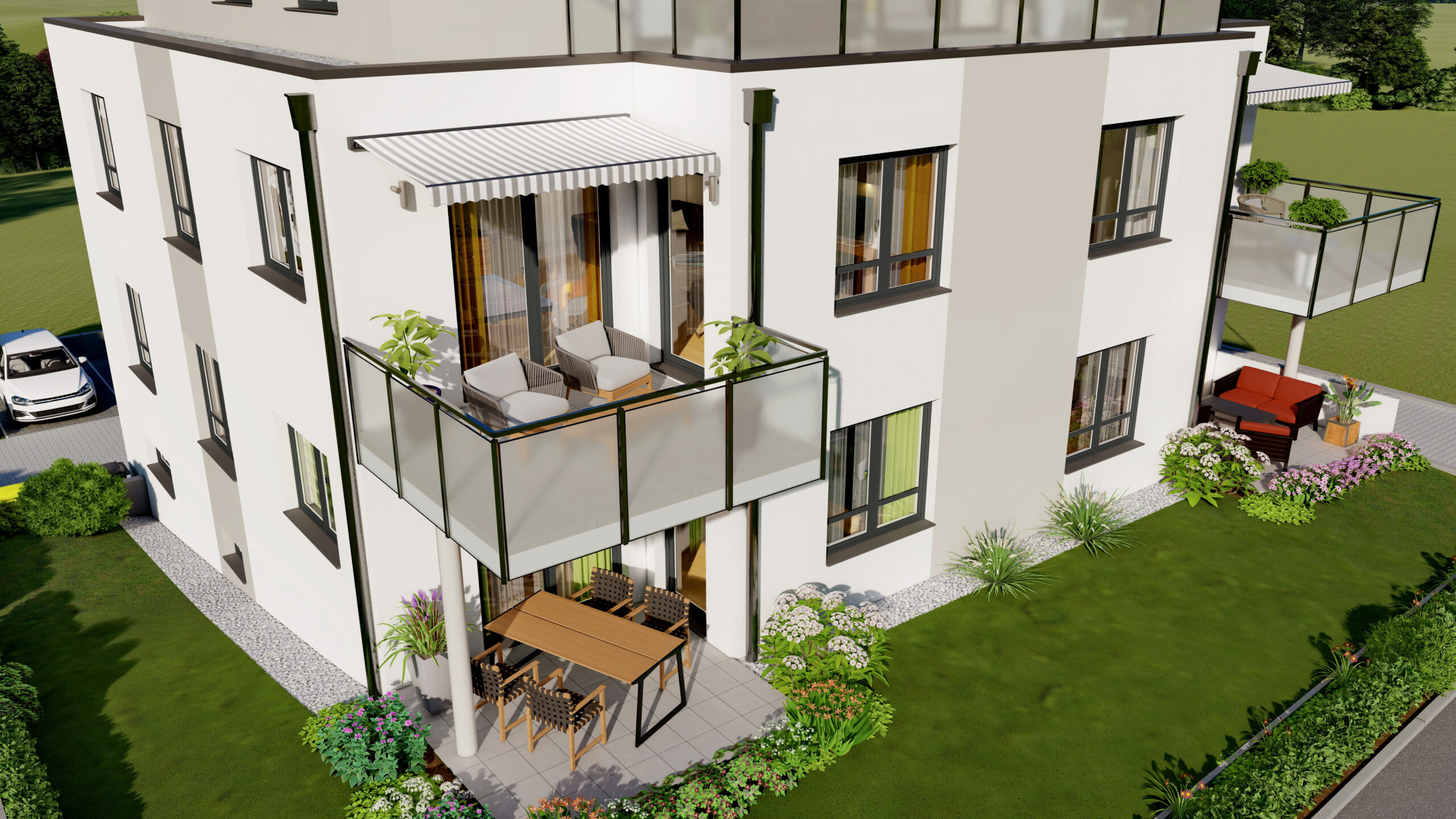 Hochwertige Fenster mit Dreifachverglasung und einbruchhemmenden Beschlägen bieten Sicherheit und Energieeffizienz. Die Außenfassade ist mit einem modernen Wärmedämmverbundsystem ausgestattet, das für eine optimale Isolierung sorgt. Die Dacheindeckung erfolgt mit langlebigen Tondachpfannen, und alle Wohneinheiten sind mit eleganten Balkon- oder Terrassenelementen ausgestattet. Moderne Elektroinstallationen, eine hochwertige Badausstattung und flexible Raumaufteilungen runden das Angebot ab. Dieses Bauvorhaben vereint zeitgemäße Architektur mit nachhaltiger Bauweise – ein ideales Zuhause für anspruchsvolle Bewohner.